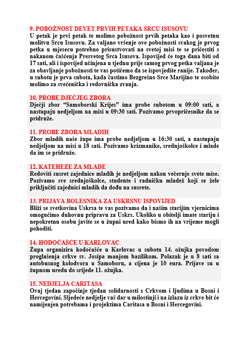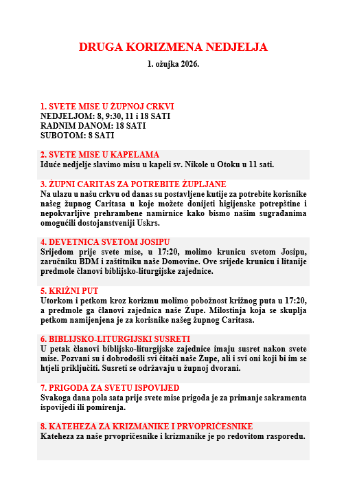 DRUGA KORIZMENA NEDJELJA, 01. ožujka 2026.
