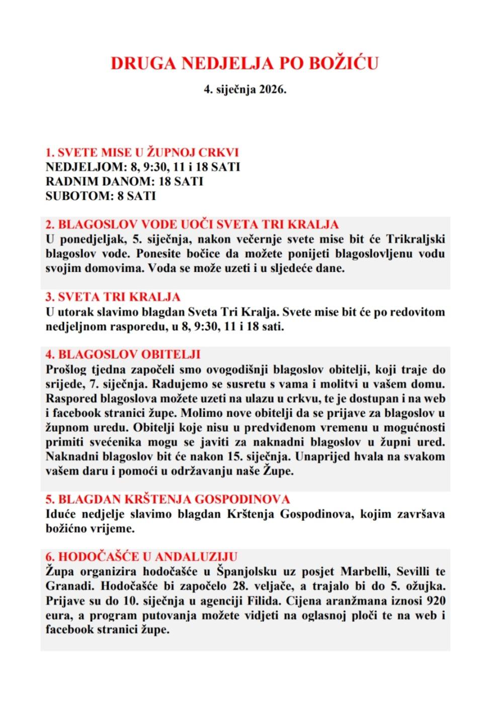 DRUGA NEDJELJA PO BOŽIĆU, 4. siječnja 2026.