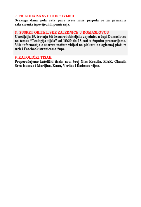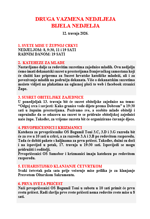 DRUGA VAZEMNA NEDJELJA, 12. travnja 2026.