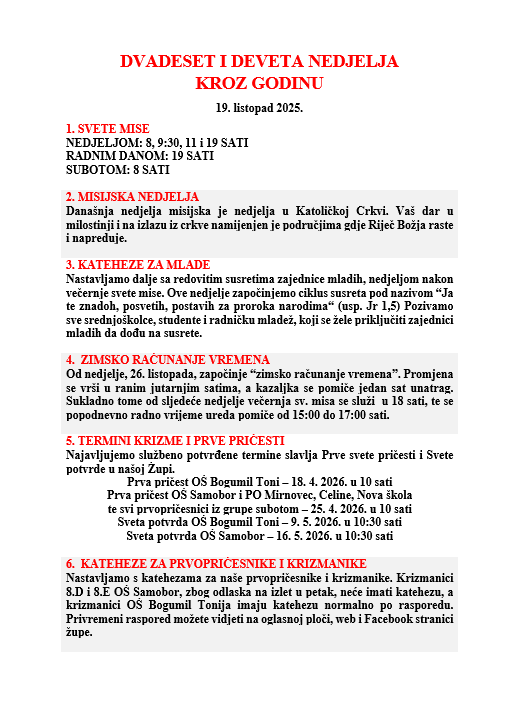 DVADESET I DEVETA NEDJELJA KROZ GODINU, 19. listopada 2025