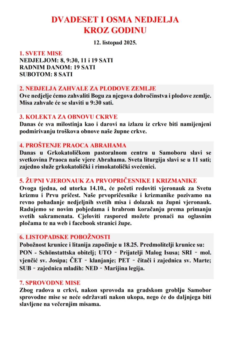 DVADESET I OSMA NEDJELJA KROZ GODINU, 12. listopad 2025.