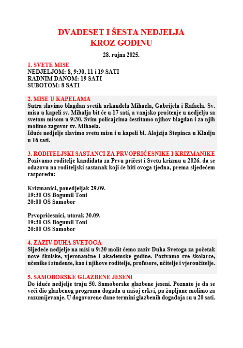 DVADESET I ŠESTA NEDJELJA KROZ GODINU, 28. rujna 2025.