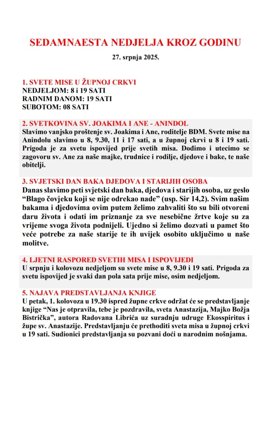 OSAMNAESTA NEDJELJA KROZ GODINU, 03. kolovoza 2025.