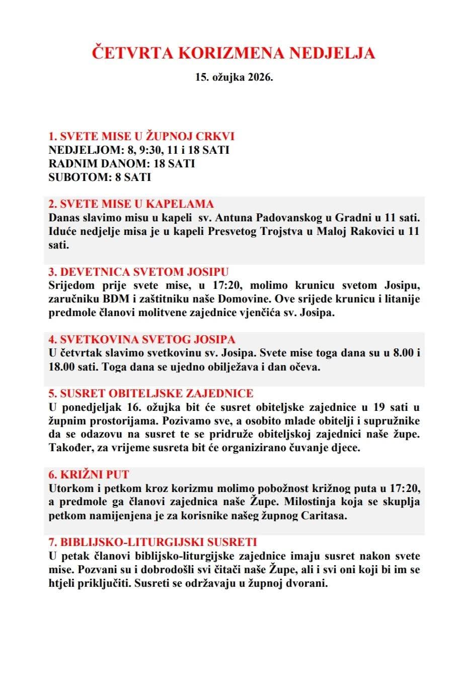 PETA KORIZMENA NEDJELJA, 22. ožujka 2026.