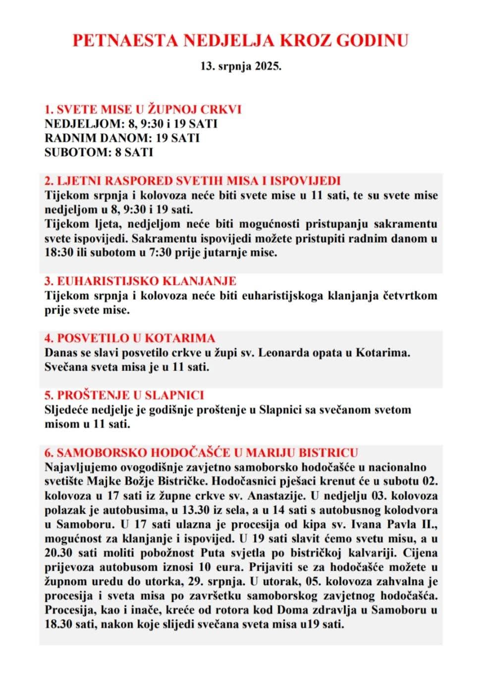 PETNAESTA NEDJELJA KROZ GODINU, 13. srpnja 2025.